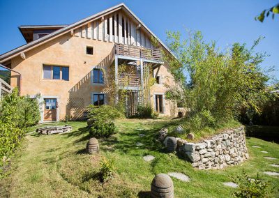 Au niveau de la scierie qui est sur votre gauche, tournez à droite. Après quelques mètres, au niveau du hameau, tournez à gauche. Tournez à nouveau à gauche pour rentrer dans le hameau. Continuez tout droit. Le moulin est en haut du hameau sur votre droite.